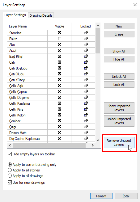 With the "Removed unused layers" feature, unused layers are deleted at once..