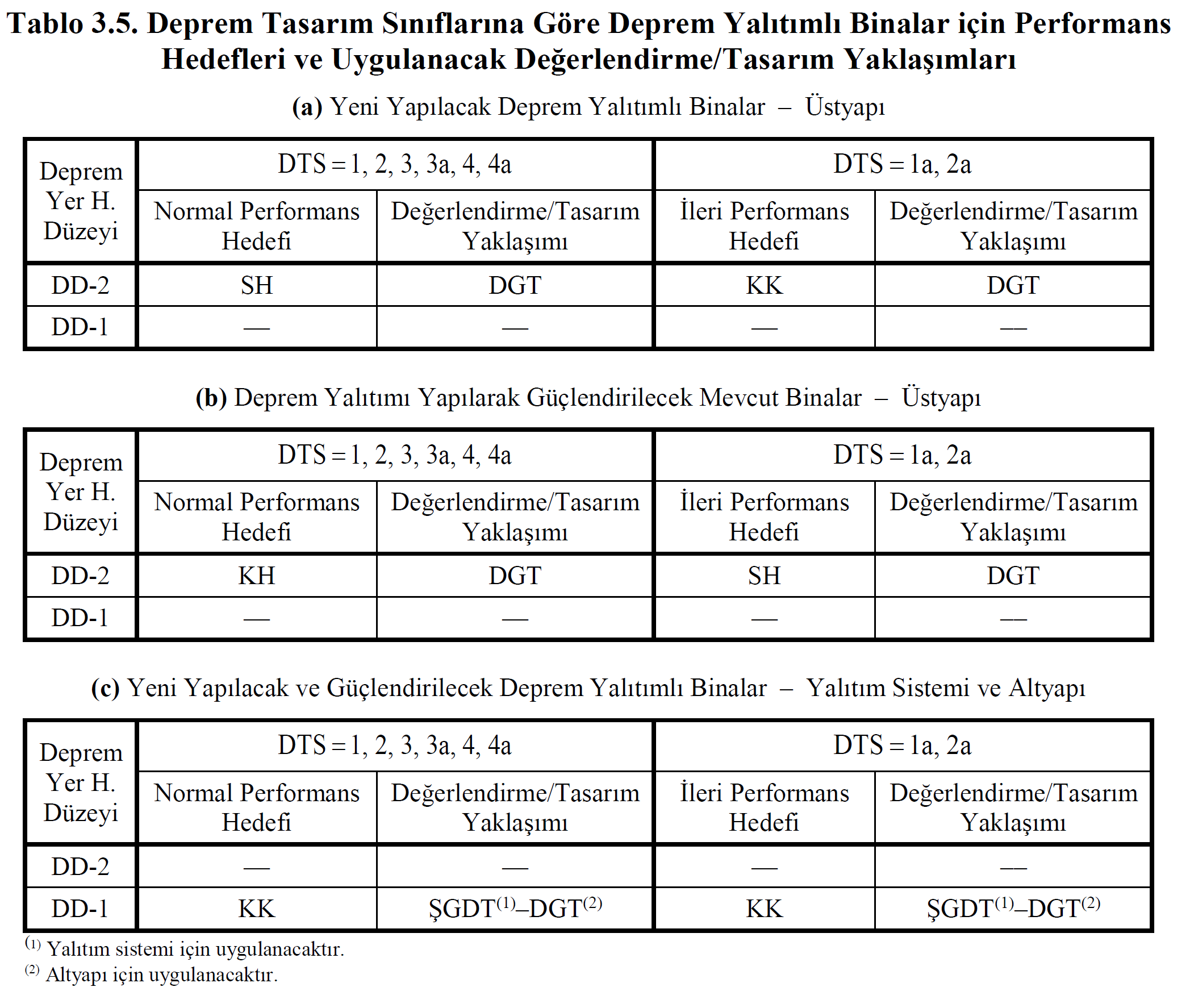 Normal Performance Targets defined for Earthquake Design Class DTS = 1, 2, 3, 3a, 4, 4a according to TBDY 3.5.1 and Advanced Performance Targets defined for Earthquake Design Class DTS = 1a, 2a are defined in Table 3.4 . Table 3.4 't Earthquake Design Class ' by the Solidarity by Design (DOT) to approach or by Strain Evaluation and Design (ŞGDT) approach shown by a performance target solution made with.