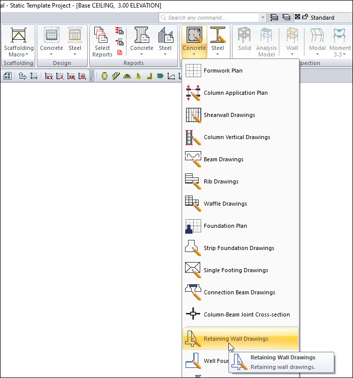 With the Retaining Wall Drawings command, you can prepare your retaining wall drawings.