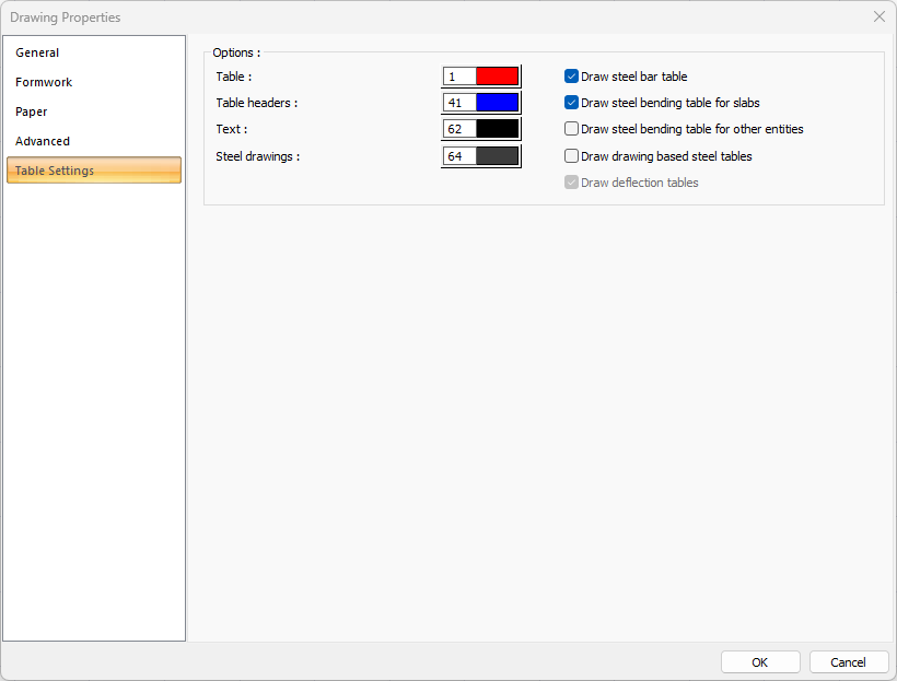 Steel ID text ![]() Sets the color of the steel ID text. When the color box is clicked, the appropriate color is selected from the window that opens. |