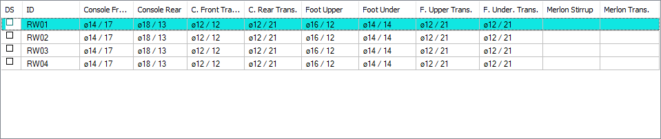 Retaining wall and rebar list ![]() The list of all rebars selected in the retaining wall as a result of the calculation is shown as a table. Rebars were selected automatically by the program. Double click on the cell to change the related rebar. |