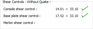 Shear controls - without earthquake ![]() Information on internal stability controls obtained as a result of without earthquake loading is printed under this section. |