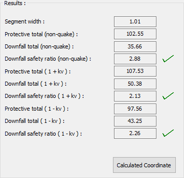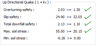 Up direction quake (1 + kv) ![]() Information on external stability checks obtained as a result of loads in up direction quake conditions are printed under this section. |
