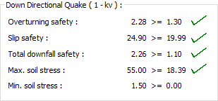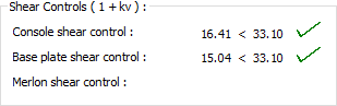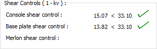 Shear controls (1-kv) ![]() Information regarding the internal stability controls obtained as a result of the loads made in down direction quake conditions are printed under this section. |