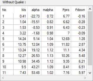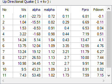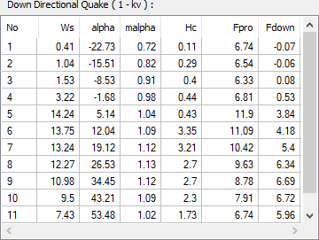 Down direction quake (1-kv) ![]() Information regarding the external stability controls obtained as a result of the loads made in the event of a down direction quake is printed under this section. |