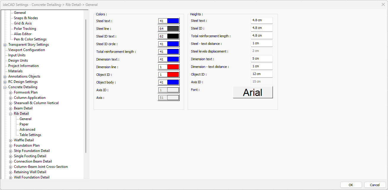 Steel drawings ![]() Sets the color of the rebar drawing. When the color box is clicked, the appropriate color is selected from the window that opens. |
