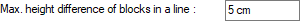 Max. height difference of blocks in a line ![]() The maximum height difference of each block in the row (vertical direction) is entered. If the difference between the height of the block to be placed and the height of the previously placed block is smaller than the value entered on this line, the layout is made. If it is large, no settlement is made. It is left to the next row. The block is each opening itself, with its rebars, sections and dimensioning. |