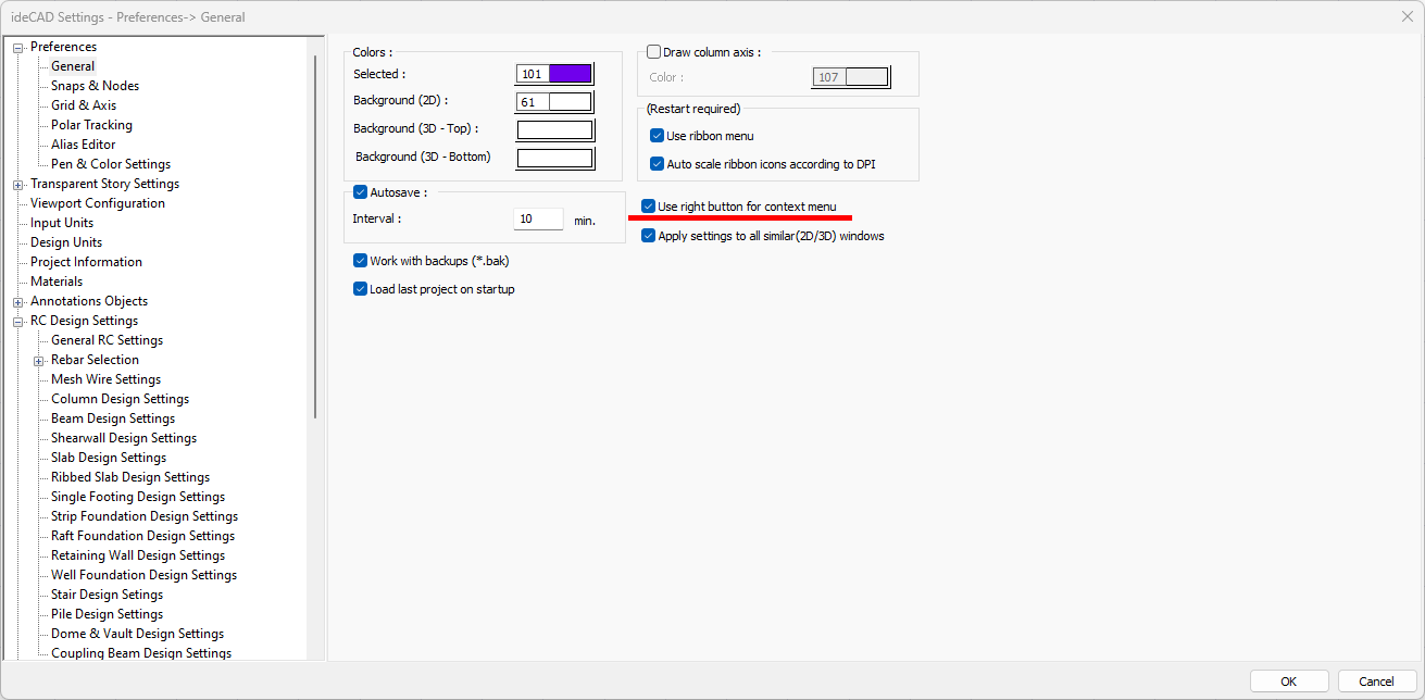 In the Preferences dialog, if the right mouse button is pressed together with the "Ctrl" key when "Use right button for context menu" is checked, the last command that was executed becomes active.