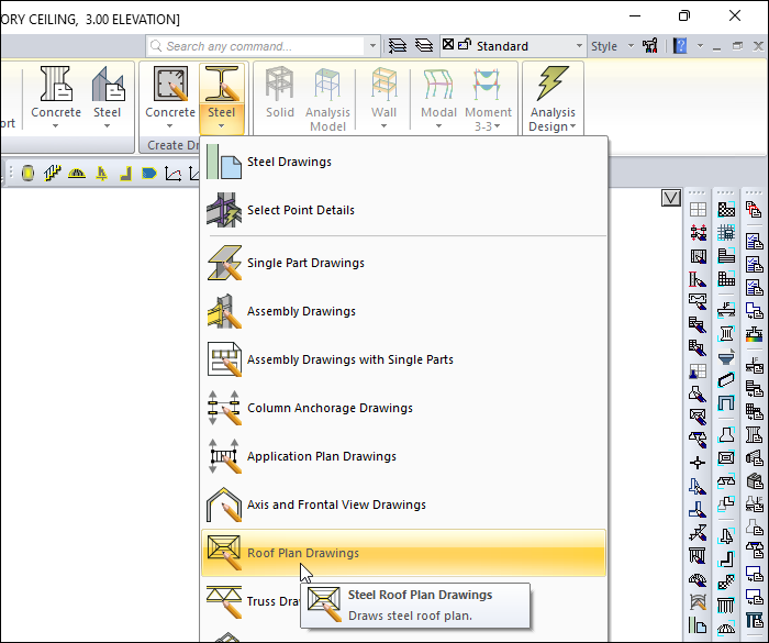 The Roof Plan Drawings command is used to prepare the roof plans drawings.