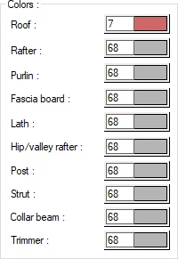 Colors ![]() Different colors can be used for each roof element. Click on the color box with the left mouse button and the mouse cursor slides over the opened color palette. The button is released when the wanted color is reached. The color box turns into the selected color. If the color box is clicked on the keyboard with the Shift key, the pen thickness of the relevant color can be adjusted. |