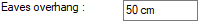 Eaves overhang ![]() Overhang length is entered. While drawing the roof, the eaveses of the polygon created are shifted outward by the value entered here to create a roof. |