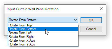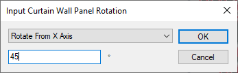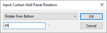 Specify the return plane and angle from the opening Input Curtain Wall Panel Rotation dialog.
