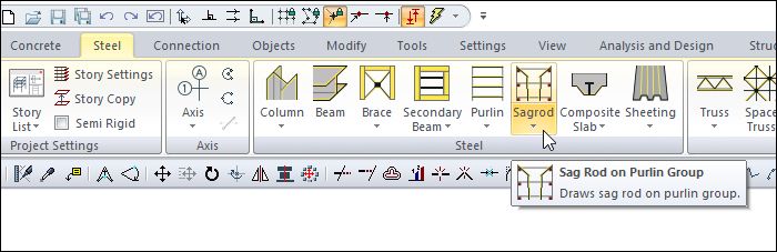 With the Tension Bar Settings command, settings such as sagrod type, edge distances, sagrod diameter, material, drawing are accessed.