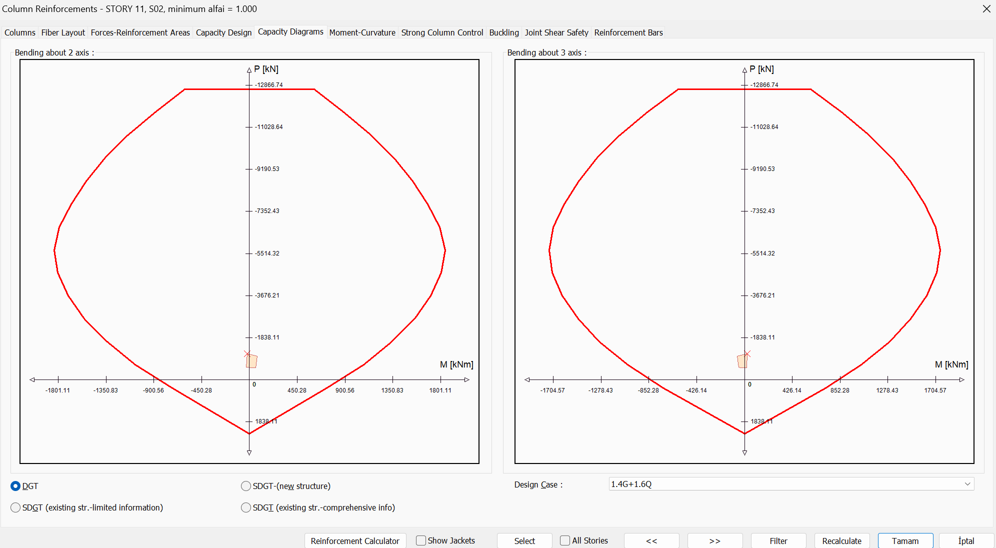 Below are the results of the capacity diagrams section obtained from the ideCAD Structural.