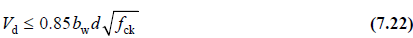 Vd = 965.46 kN ≤ 0.85 * bw * d * √fck = 0.85 * 0.4 * 1.2 * √35 = 2414 kN √