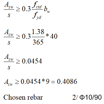 Stirrup calculation in accordance with TBDY 7.6.8.2b
