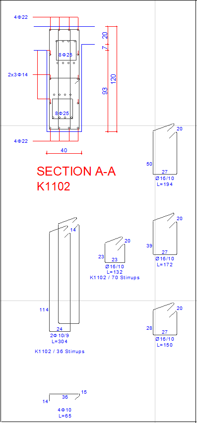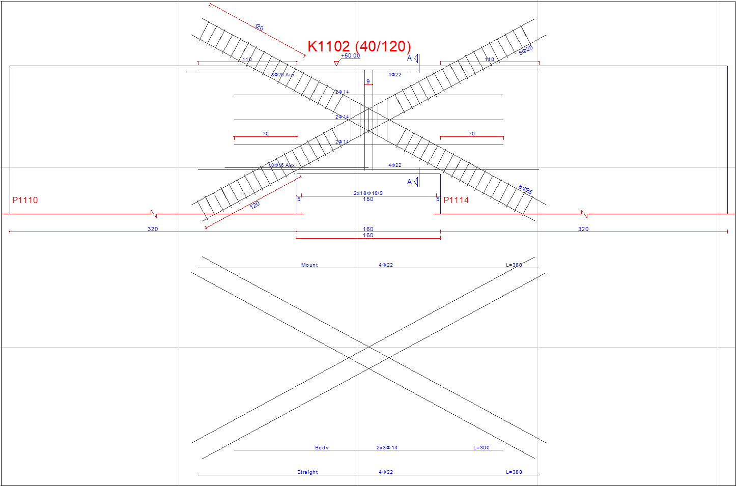 In addition to diagonal reinforcements, earthquake hoops specific to coupling beams will be calculated in accordance with TBDY 7.6.8.2b. At the same time, the minimum amount of stirrups and horizontal reinforcements stipulated in TS 500 will be installed.