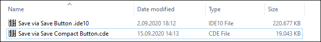Save Compact command is used to archive and reduce the size of the project . Projects saved with the Save Compact command will be smaller in size than projects saved with the Save command (.ide10) because they are compressed.