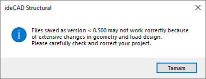 If the version you want to save is older than 8.62, you will see a warning screen in case your project cannot be opened.