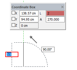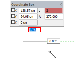 In the coordinate box, type 2 cm on the L line, press Enter and draw a 2 cm line segment in the horizontal direction to the right.