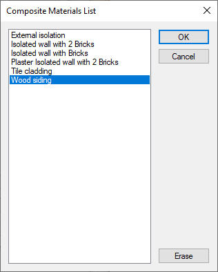 The Composite Material List dialog will open. Select the composite material from this dialog.