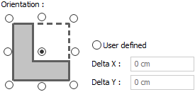 Orientation ![]() These are the options that determine the misalignment of the column in the plan. It provides adjustment of 9 different misalignments when it is placed on the column axis. Select the relevant option in the diagram shown according to the plan plane or enter any numerical value in the user-defined section. |