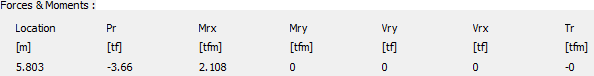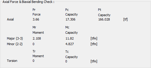 PMM ratio ![]() It is the ratio of requirement to section capacity (PMM Ratio = Need/Capacity). |