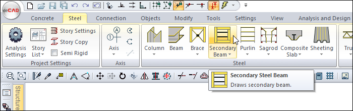 Click the setting icon in steel beam toolbar, which appears on the screen after the secondary beam command runs.