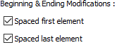 Mid-oriented first element/Mid-oriented last element ![]() When placing the first and last elements, alignment is made according to the midpoint of the element. When the Spaced first element/Spaced last element options are activated, these options become inactive. |