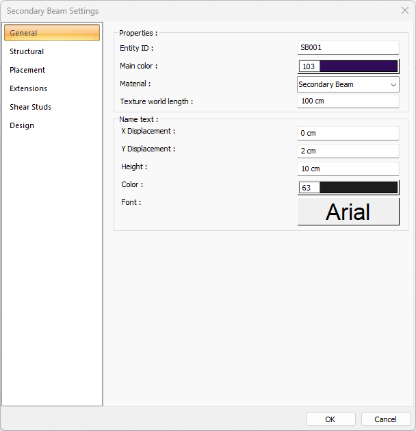 Entity ID ![]() It is the name of the secondary steel beam that will appear in the plan, drawing and report. |