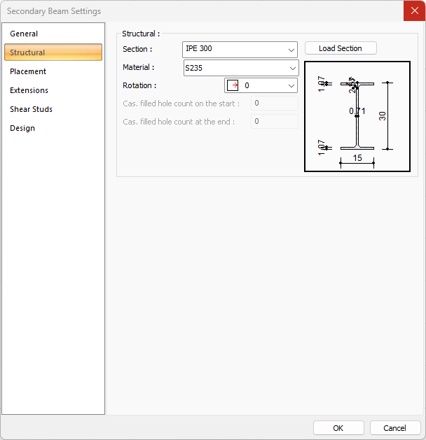 Material ![]() The material for the steel secondary beam is selected. |