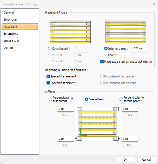 Interval based ![]() Secondary beams can be drawn by entering the distance between the secondary beams. |