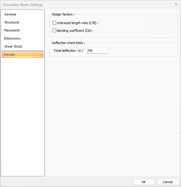 You can find detailed information under the title of Steel Secondary Beam Design Settings.