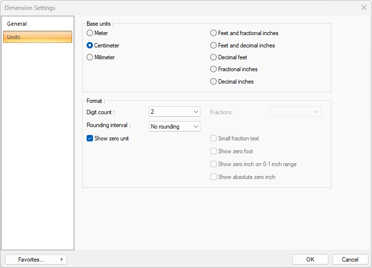 Dimension Settings - Units Tab