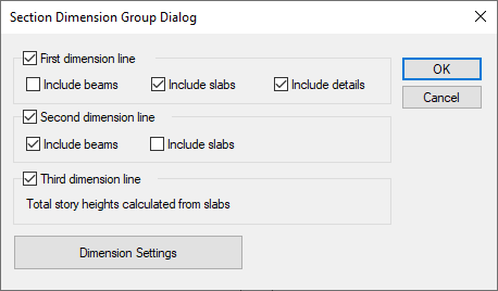 Include beams ![]() If marked, beam dimensions are given on the first dimension line. |