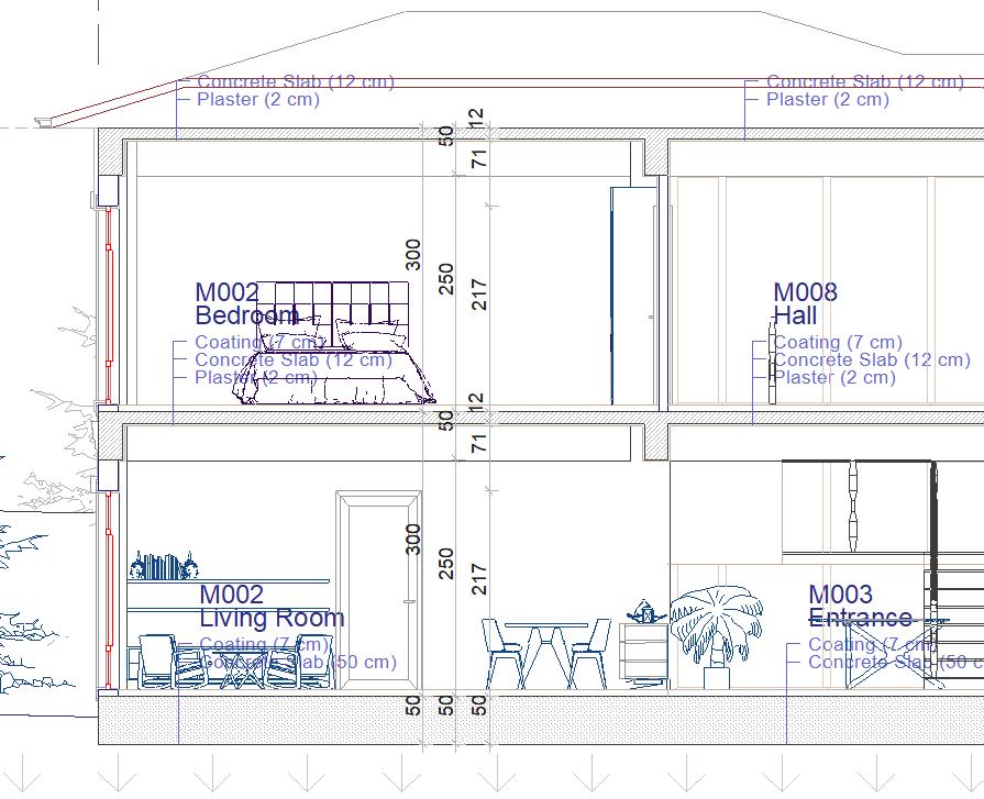 Include slabs ![]() If marked, slab dimensions are given on the first dimension line. |