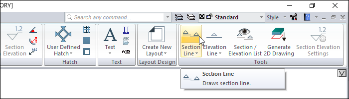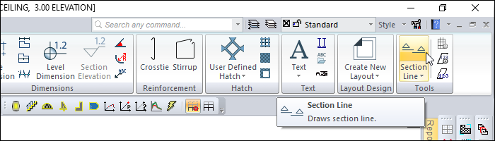 Complete the section line drawing by pressing the OK icon on the toolbar or the Enter key on the keyboard.