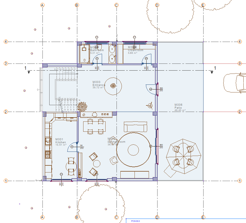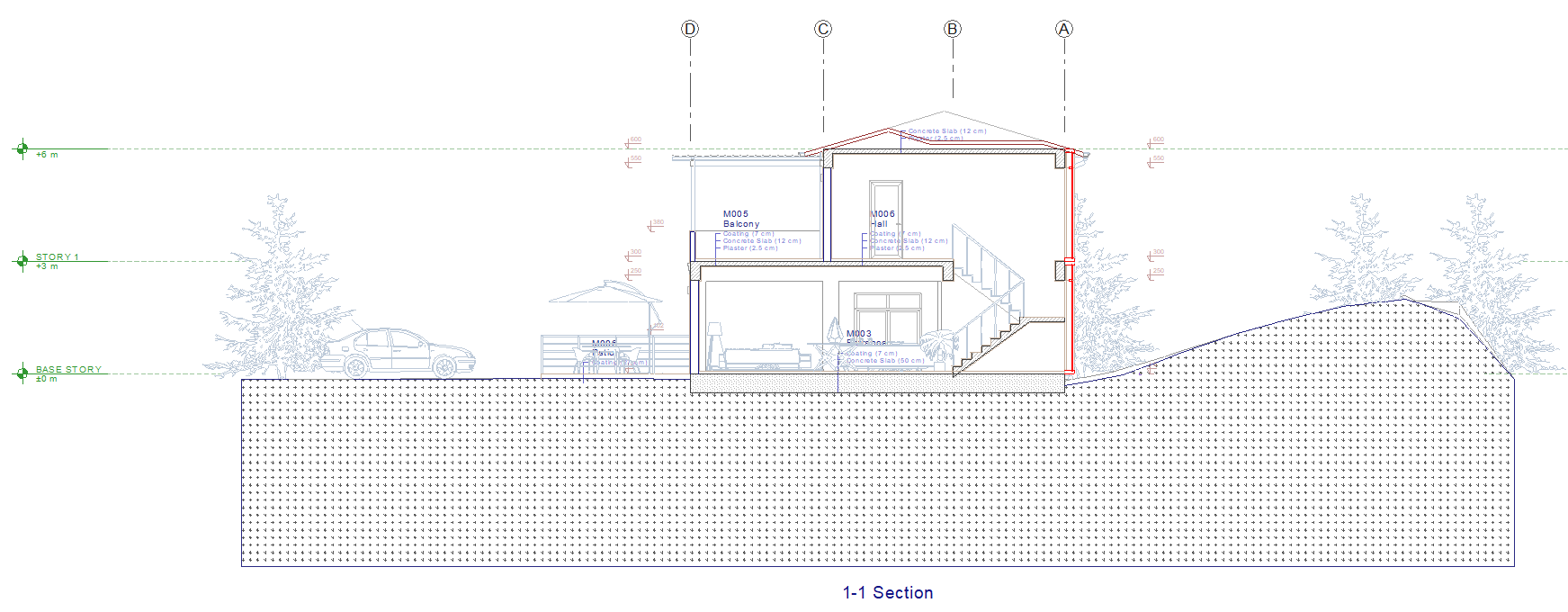 With the section line command, automatic section drawings are created according to the line passed through the structure. All objects that are in the plane according to the location of the drawn line are considered as cut objects, and other objects in front of the plane are considered as visible objects. ideCAD automatically separates the section and the elevation, but the section line should be drawn if a section is desired, and the elevation line should be drawn if a elevation is desired.