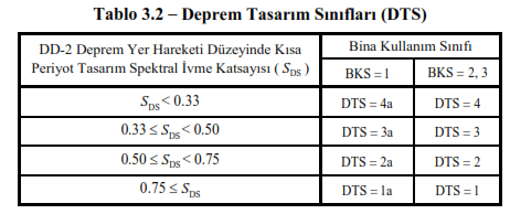 The earthquake design class in TBDY 2018 is determined in Table 3.2 .