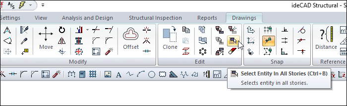 You can select any object (wall, column, slab, etc.) in plan or perspective view on all stories at once with the Select Entity in All Stories command or by pressing the Crtl + B keys on the keyboard .