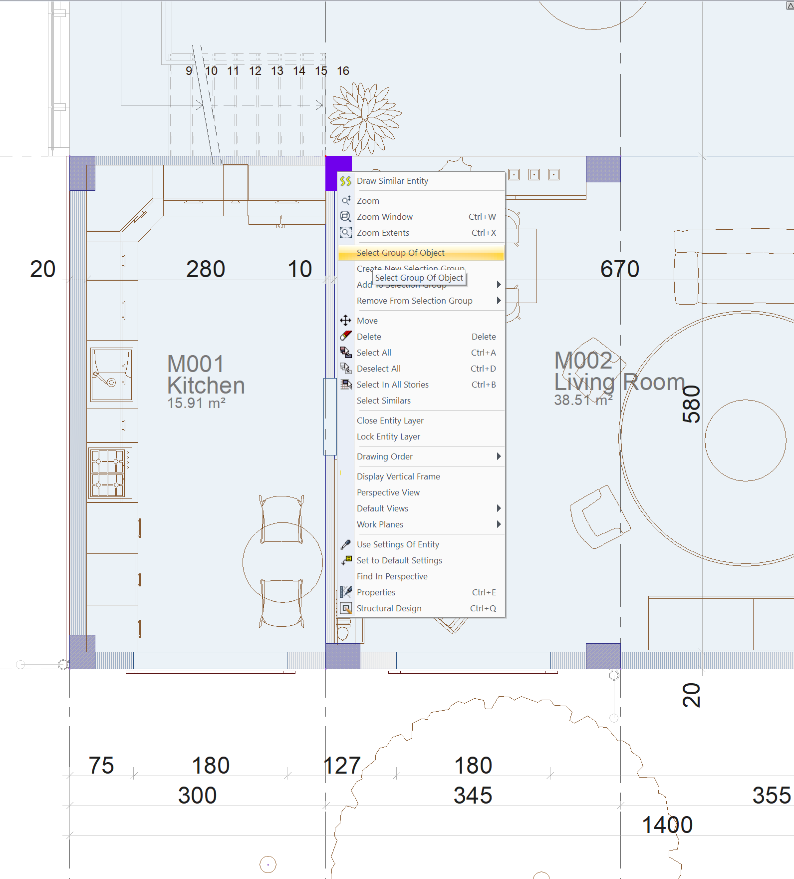 After selecting an object belonging to the group to be selected, you can access the Select Group of Objects command from the menu that appears when the right mouse button is clicked .