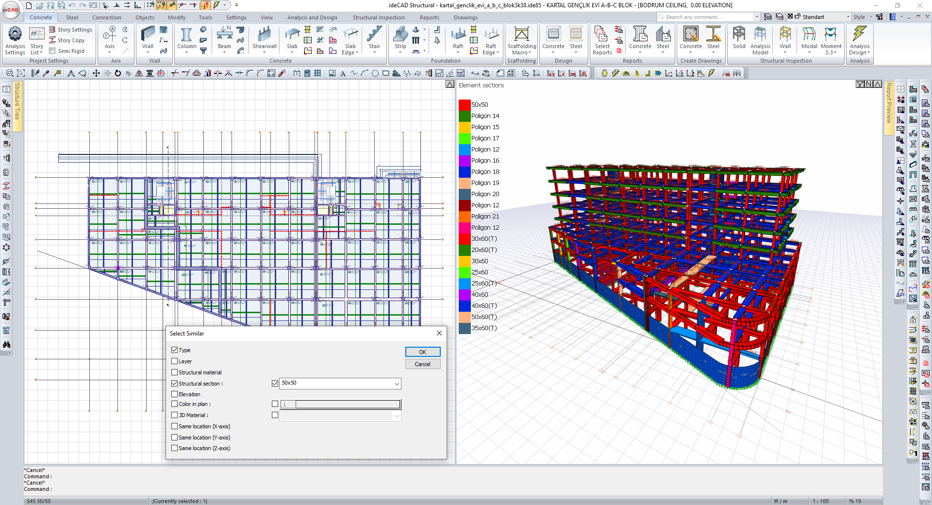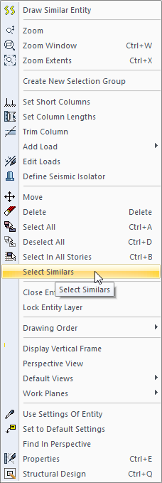 In the menu that appears by pressing the right mouse button while on an object, certain properties are specified with the "Select Similars" command, and similar objects matching these properties are selected at once.