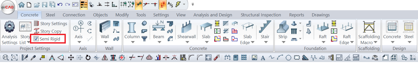 By activating the Semi-Rigid option under the Analysis Model heading in the Analysis and Design menu in the Ribbon Menu, you can solve the slabs with the assumption of a semi-rigid diaphragm.