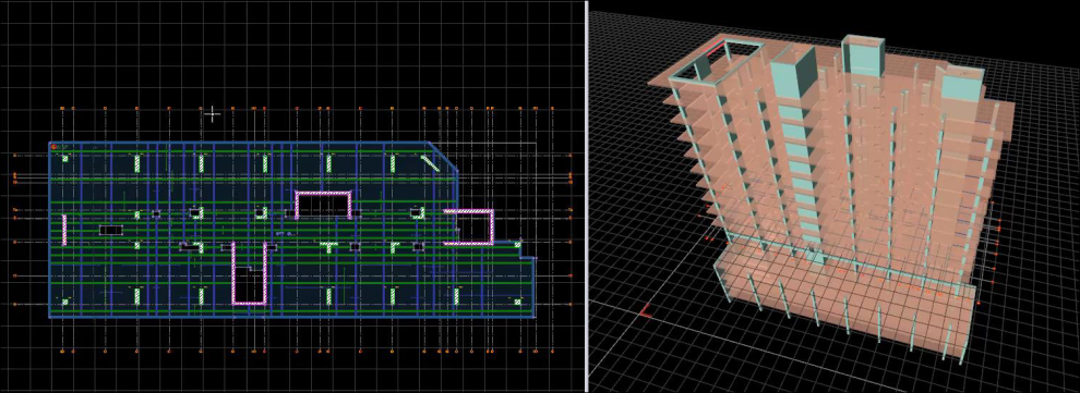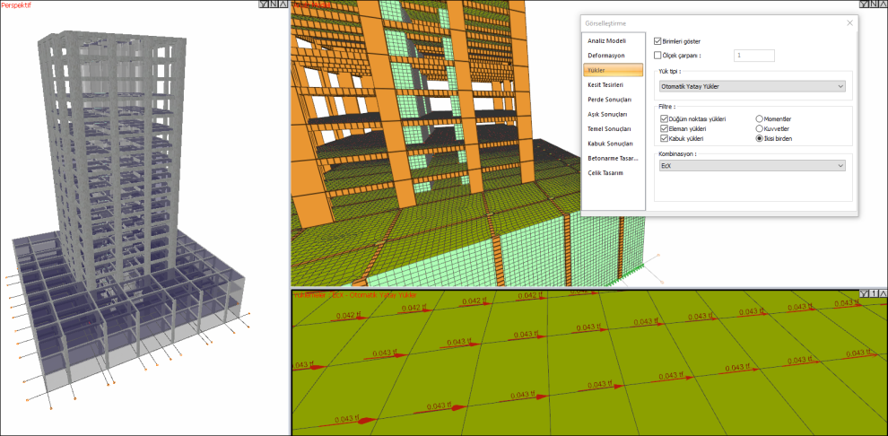 When we compare the rigid diaphragm and semi-rigid diaphragm models, different displacement values are seen in the middle region of the models.