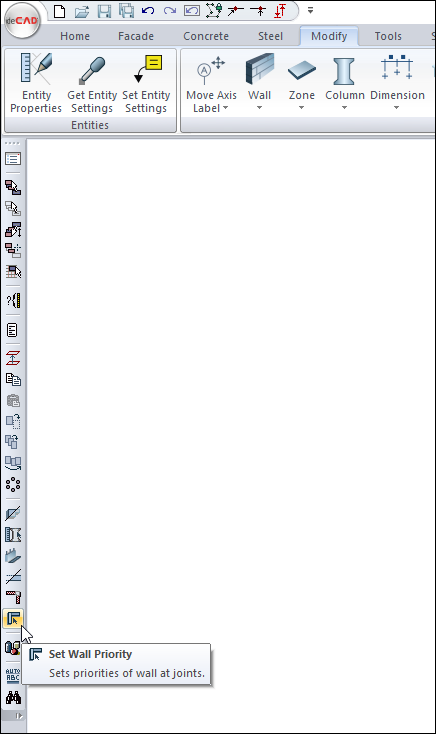 The Set Wall Priority provides the connection priority of two or more walls that connect at a point. Wall connection groups are determined. Walls with the same number are connected within themselves. Different numbered walls do not connect. Walls with different wall priority numbers are drawn separated from each other.