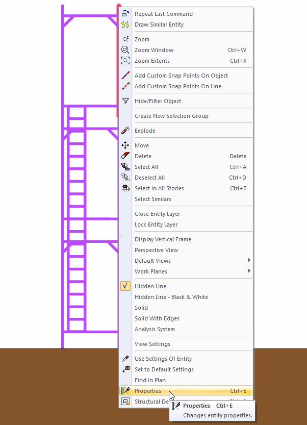 Select the scaffolding for which you want to change the partition width and click the right mouse button. Click Properties from the right-click menu that opens .