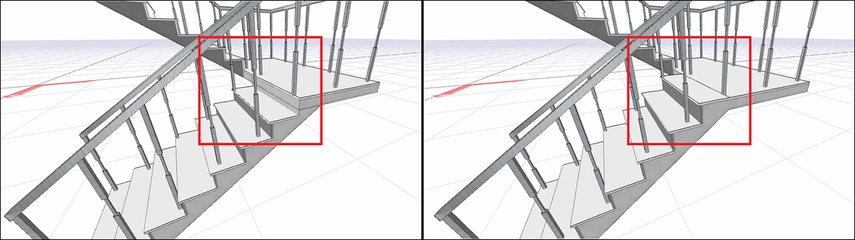 To bring the last step of the stairs to the same elevation as the landing; "Top tread is at ceiling" option is marked in the stairs settings.