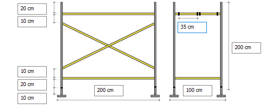 Scaffolding view after changing walkway width to 70 (partition width changed to 200) |