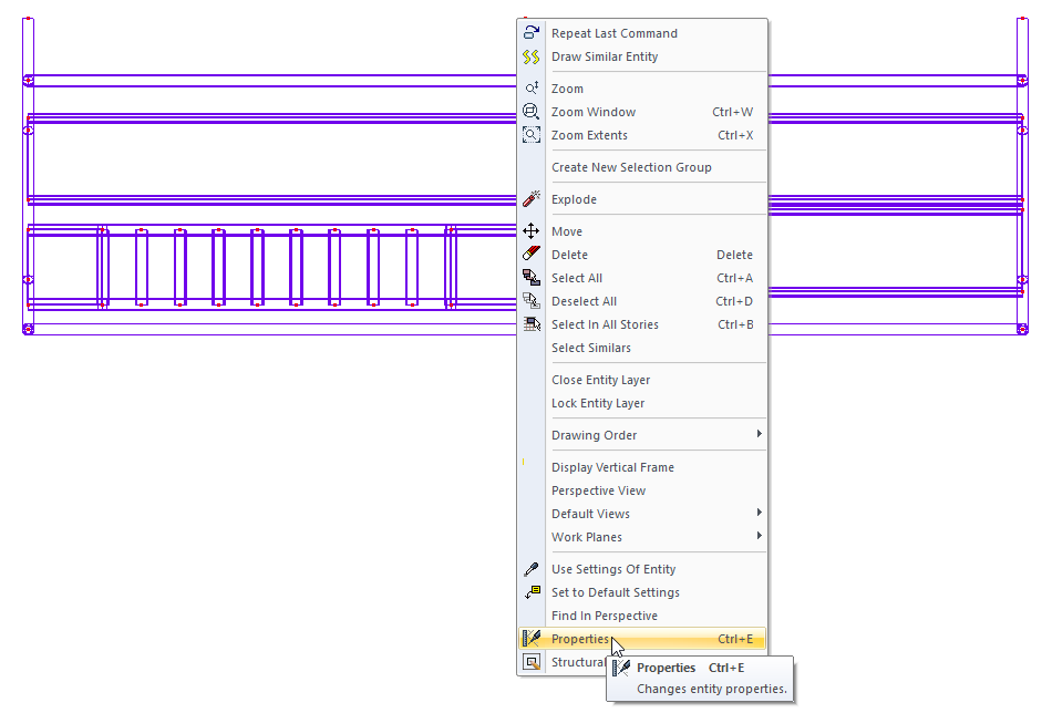 Select the scaffolding for which you want to change the width of the walk way and click the right mouse button. Click Properties from the right-click menu that opens .