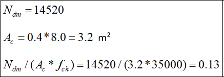 The ratio of axial forces occurring under G + Q vertical loads to the characteristic concrete compressive strength is determined without determination the earthquake loads. In this calculation, the shearwall thickness is accepted as 40 cm.